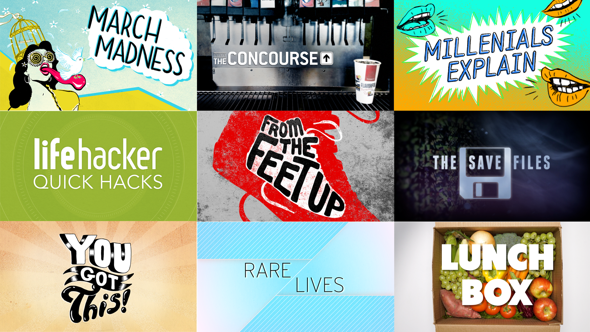 Gizmodo Media Group - This is a selection of the show title designs I created for the Gizmodo Media Group sites, including Jalopnik, Deadspin, Kotaku, Jezebel, Gawker, and Lifehacker.